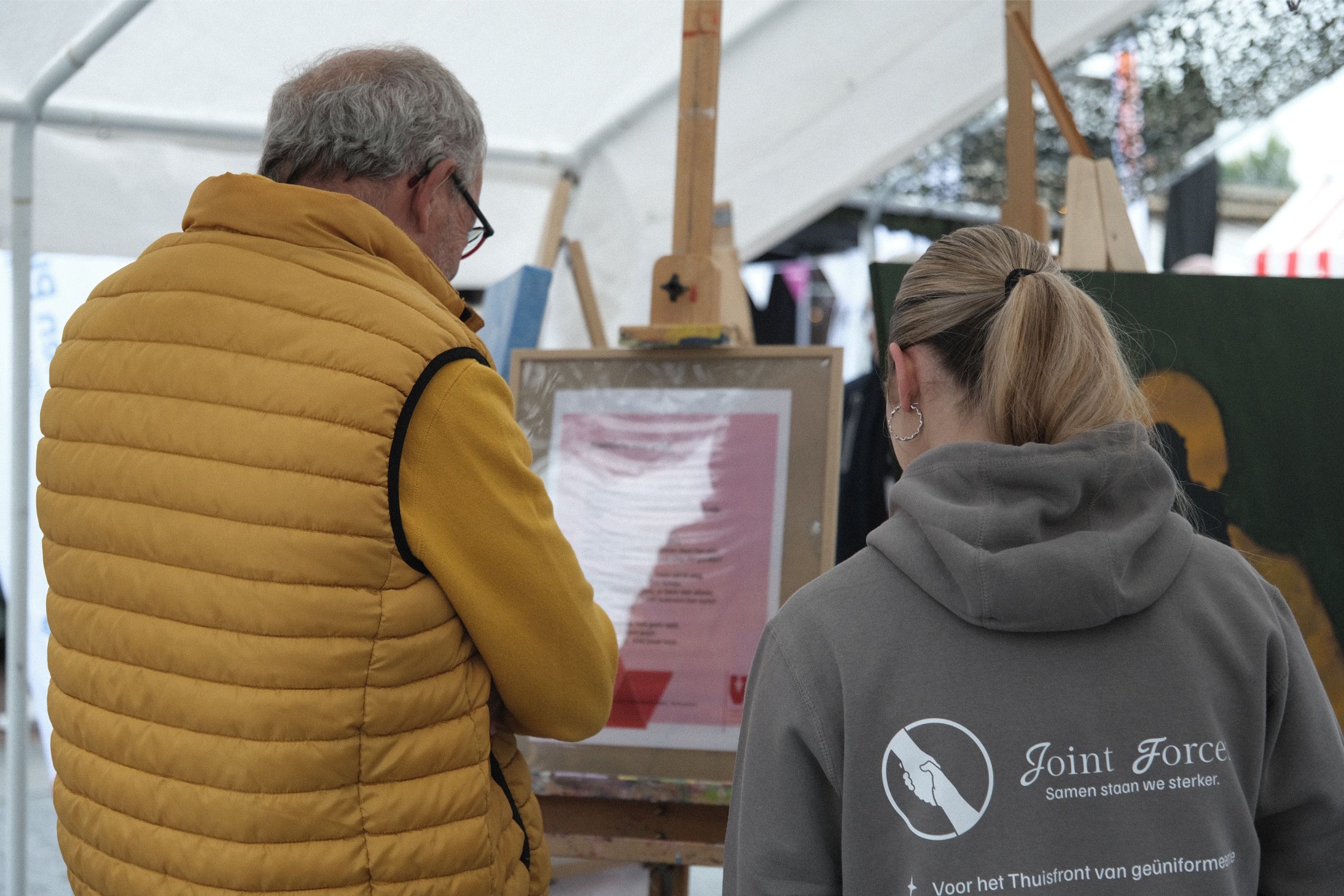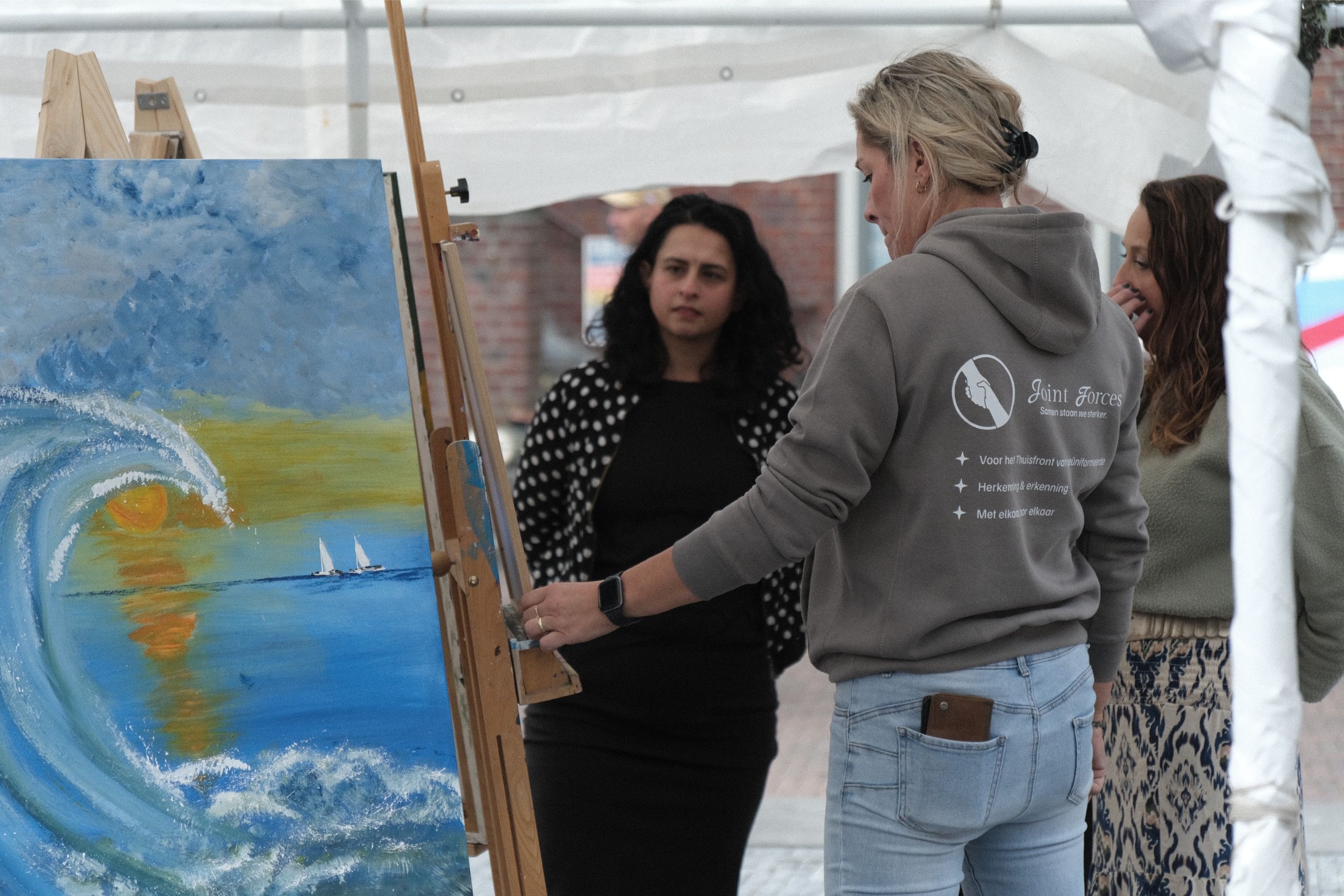 Om 13.30 uur werd het platform Joint Forces gelanceerd. Dit initiatief biedt partners en familieleden van (ex)geüniformeerden een plek voor steun, herkenning en uitwisseling van ervaringen. “Of iemand nu iets traumatisch meemaakt, de diagnose PTSS krijgt of gewoon een burn-out ervaart, vaak ontvangt diegene begeleiding via de eigen organisatie of werkgever. Het thuisfront ervaart dit echter elke dag mee en heeft ook steun nodig,” legt Selma uit.